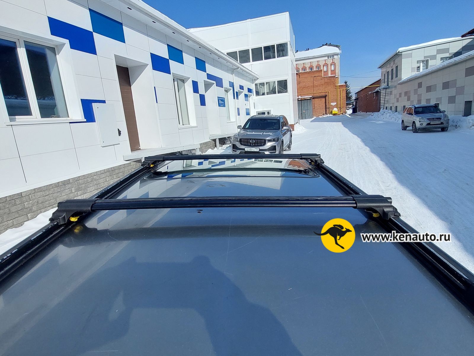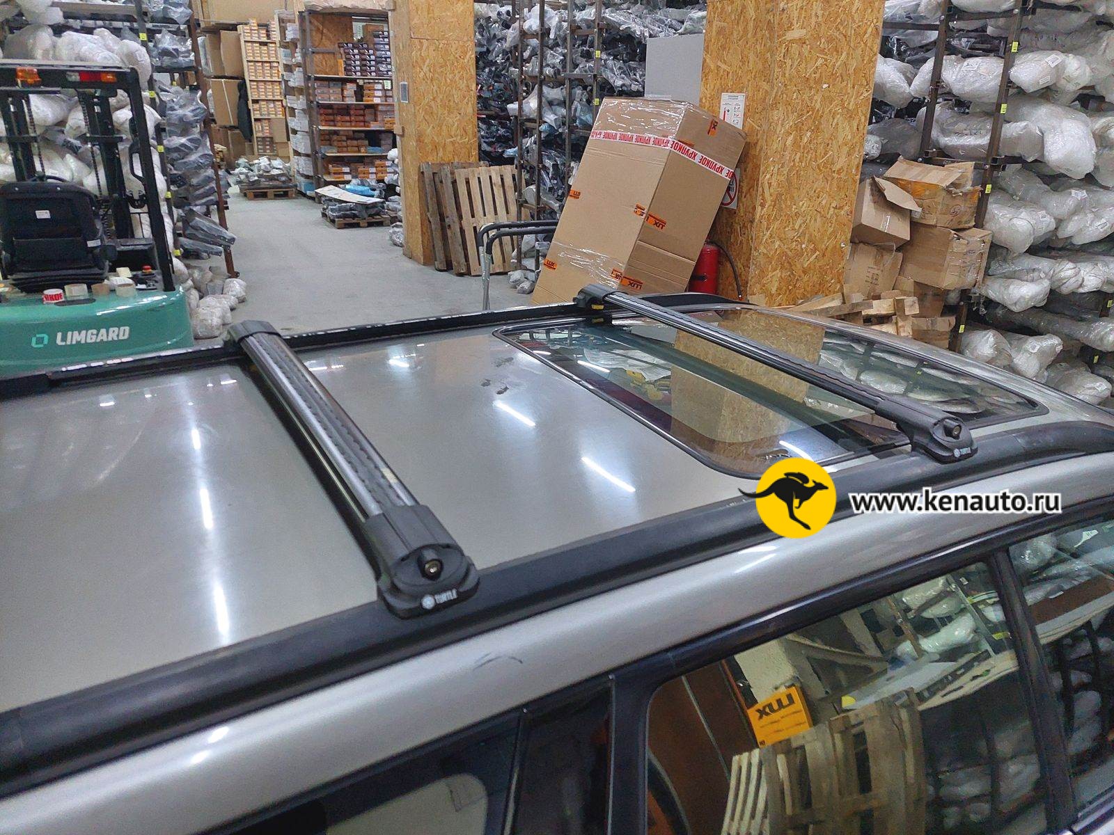 Багажник доработан. Мы сделали это за вас и не берем за это дополнительную оплату: подпилены в размер поперечины и стальные прижимные лапки фиксации за рейлинг.