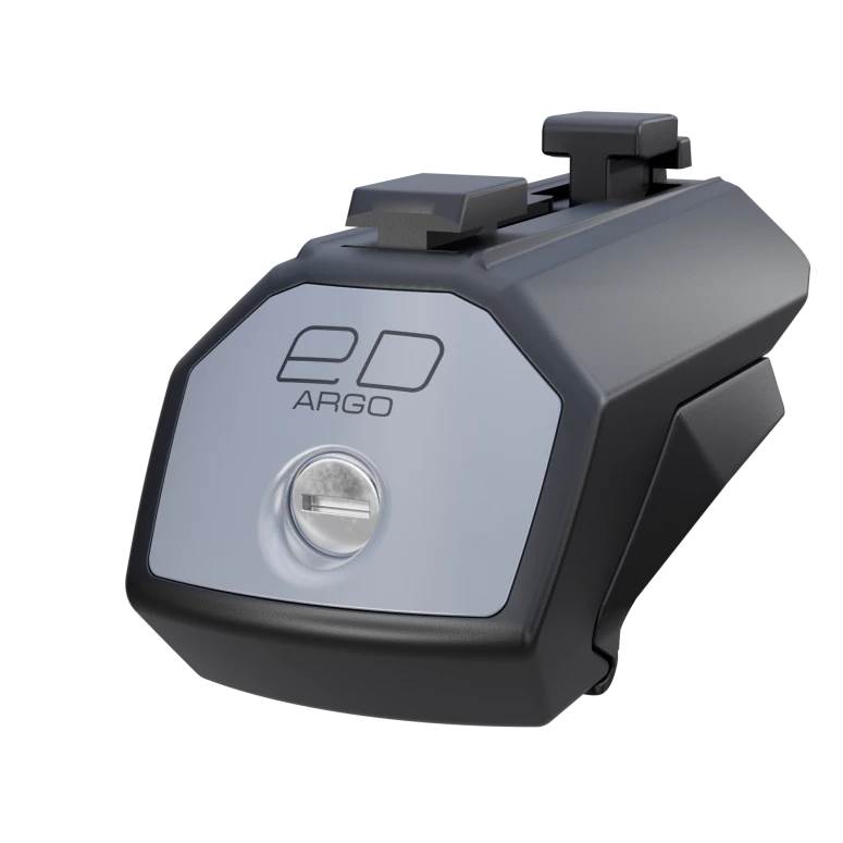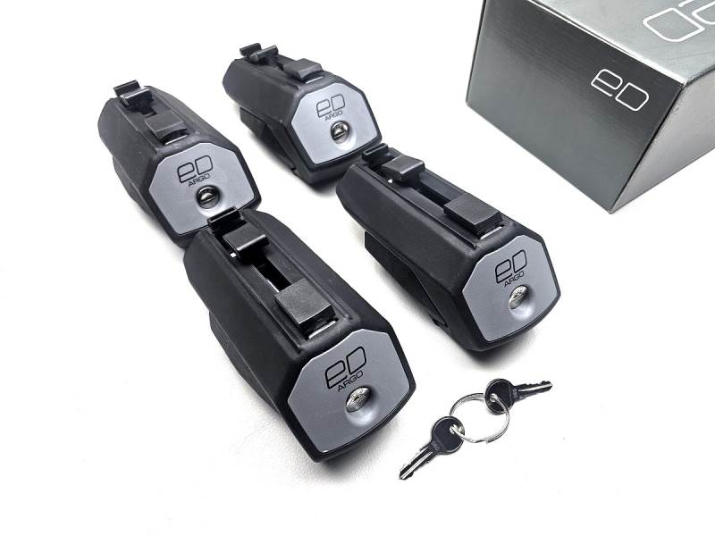 Комплект опор Евродеталь ED2-312F (стар. арт. ED2-112F) с замком для интегрированных (прижатых) рейлингов. Резиновая накладка защищает поверхность рейлингов от царапин. Оборудованы замком.