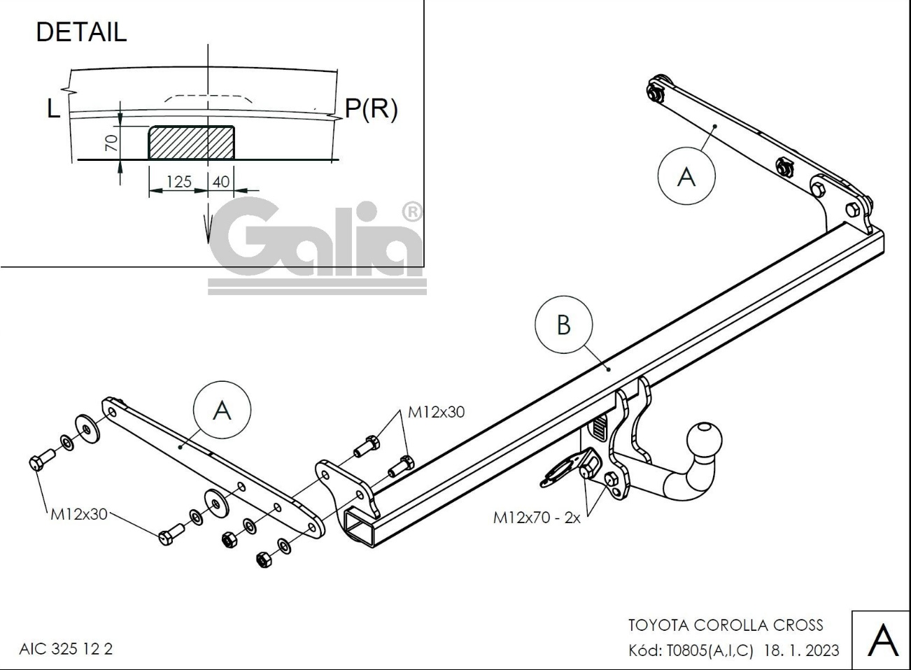 Оцинкованный фаркоп Galia T080A для Toyota Corolla Cross c 2021 г.в.